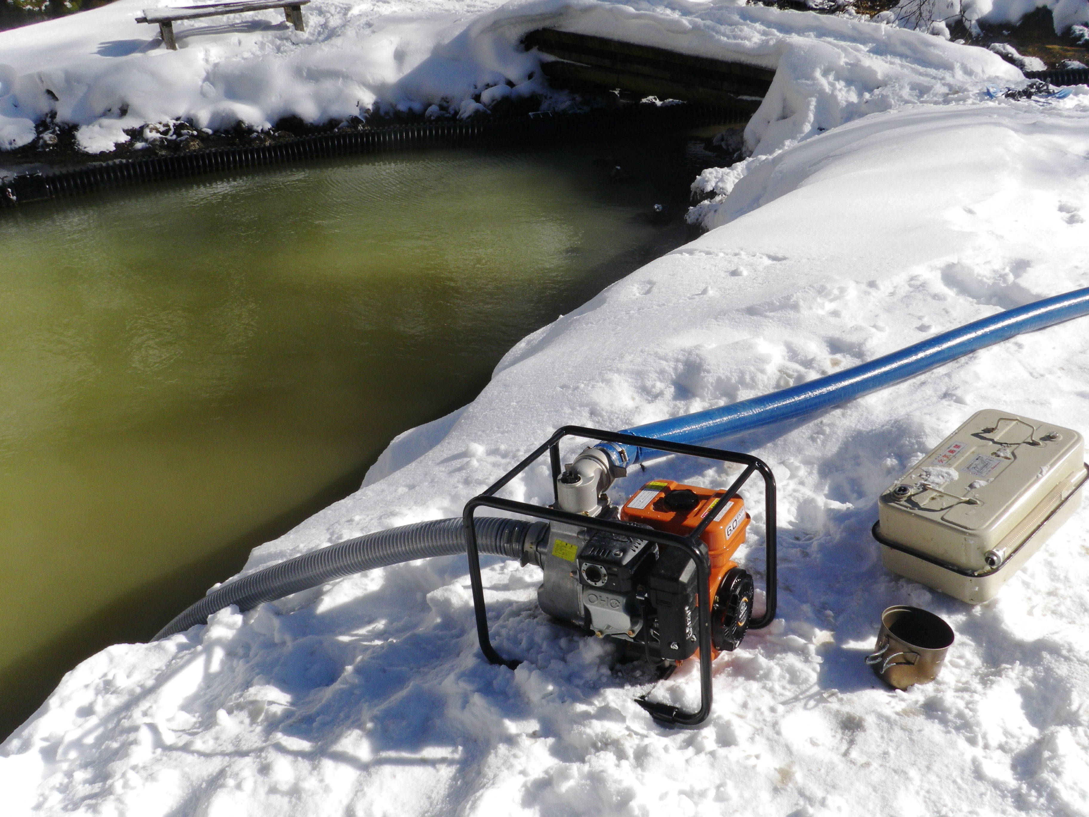 そこで予定通り、次の対策として、冷たい沢水を池に引き込む作業を昨年末に行いました。
