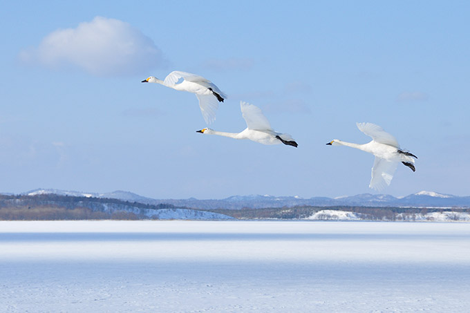 毎年、冬の使者として日本各地に飛来するコハクチョウ。