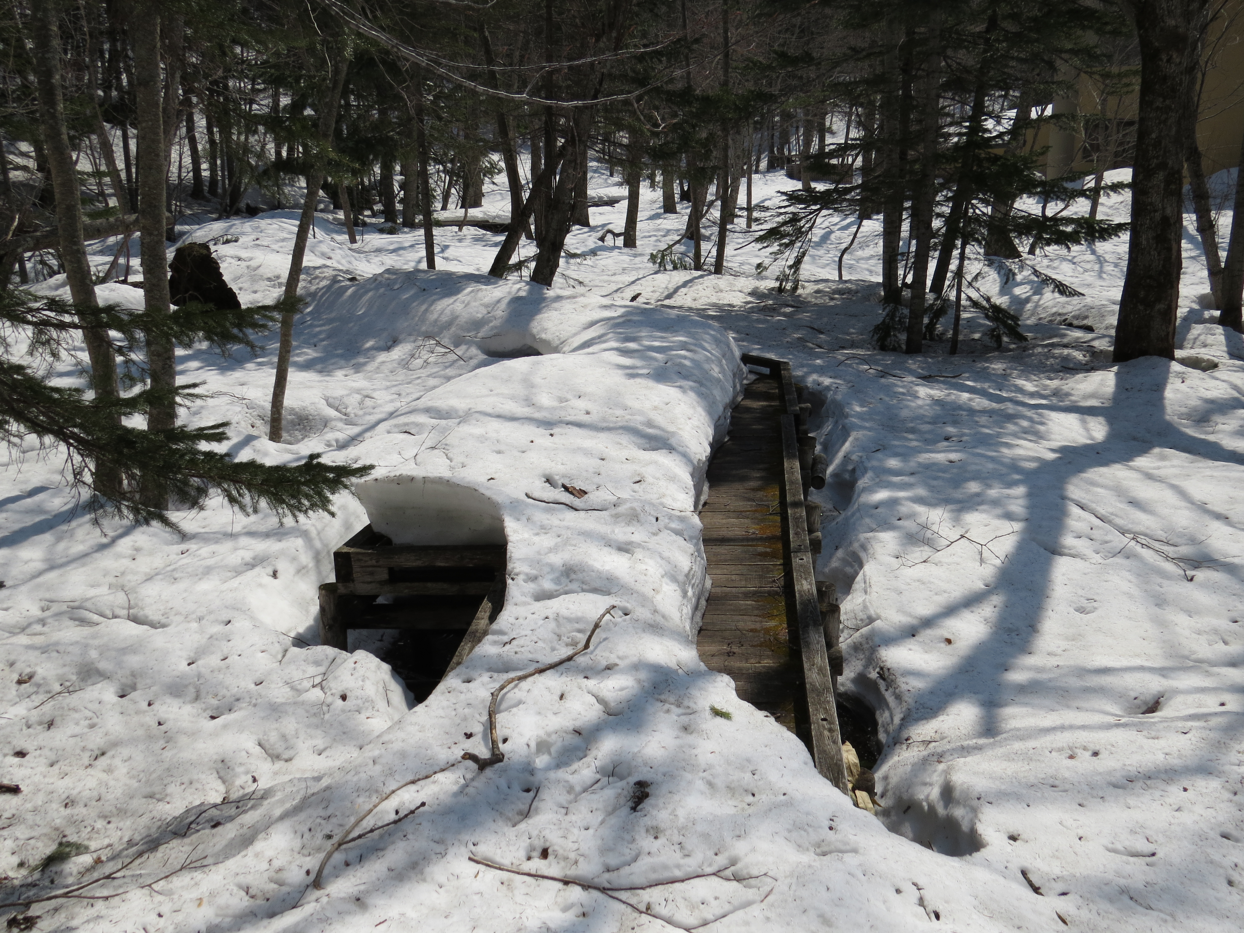 「阿寒湖畔エコミュージアムセンター裏の木道の残雪」