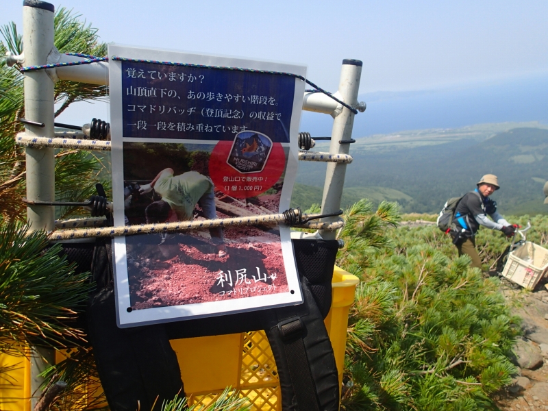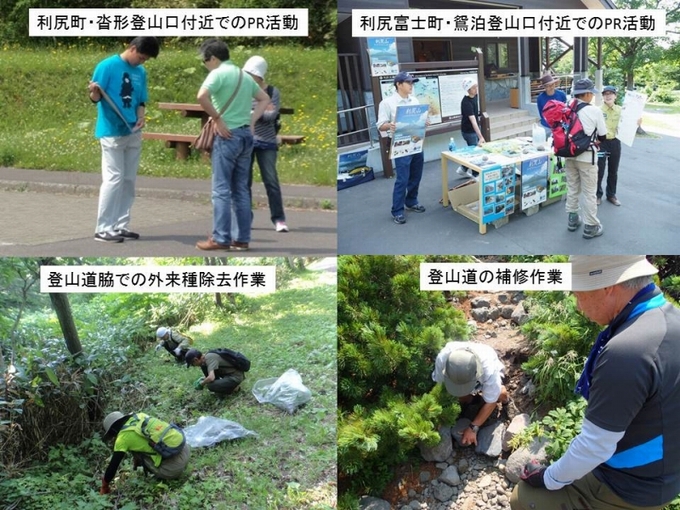 沓形、鴛泊両登山口でのバッジ販売やパネル展示によるPRのほか、20日には鴛泊6合目付近での補修作業を通したPRや、利尻島自然情報センターによる登山道脇の外来種除去活動を通したPRも行われました。