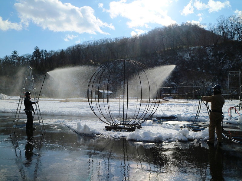 祈願祭の後は氷像の骨組みへの散水セレモニーも行われましたよ