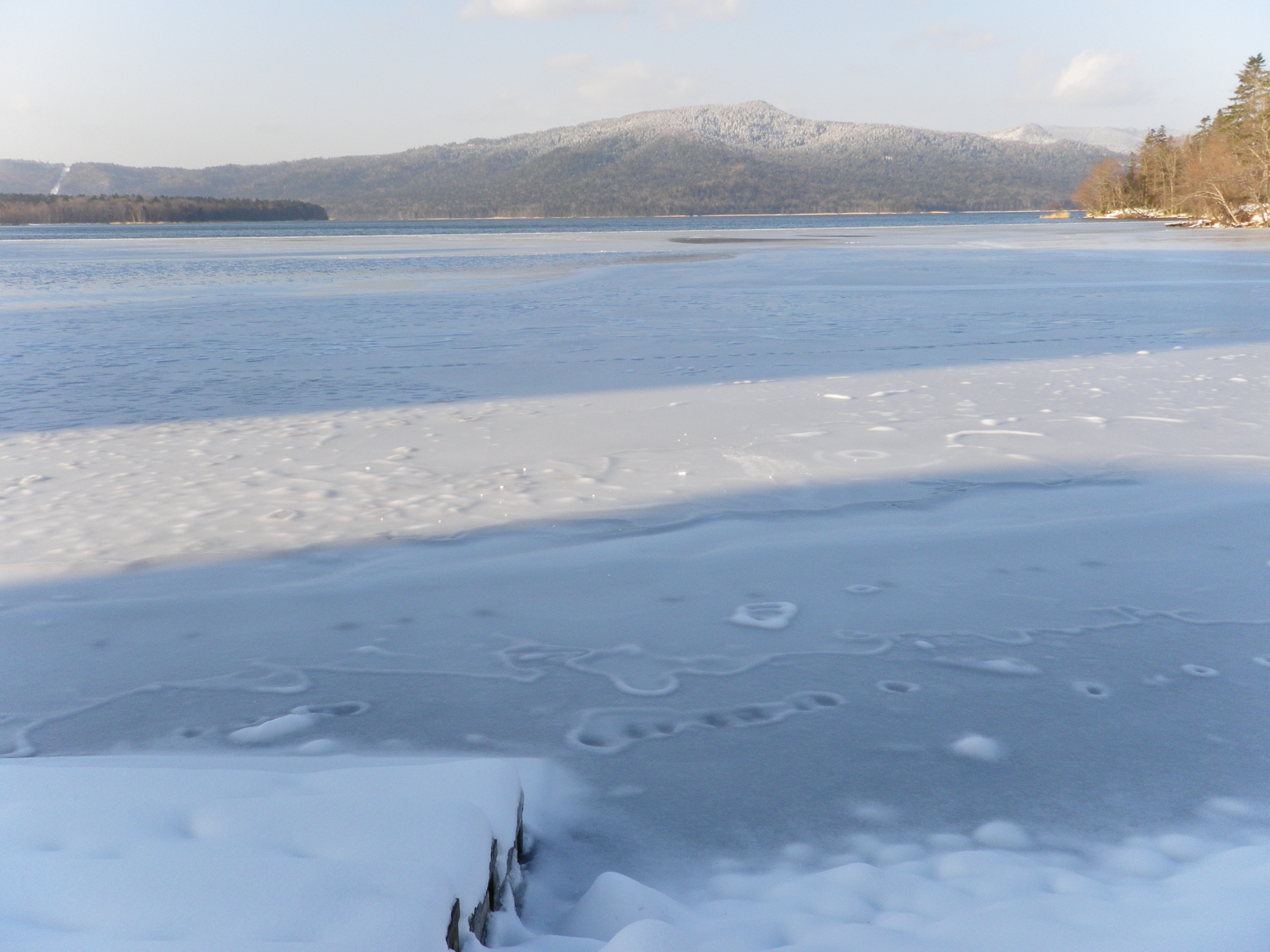 この先、温暖化の影響で完全結氷が年々遅れることにならなければ良いのですが。