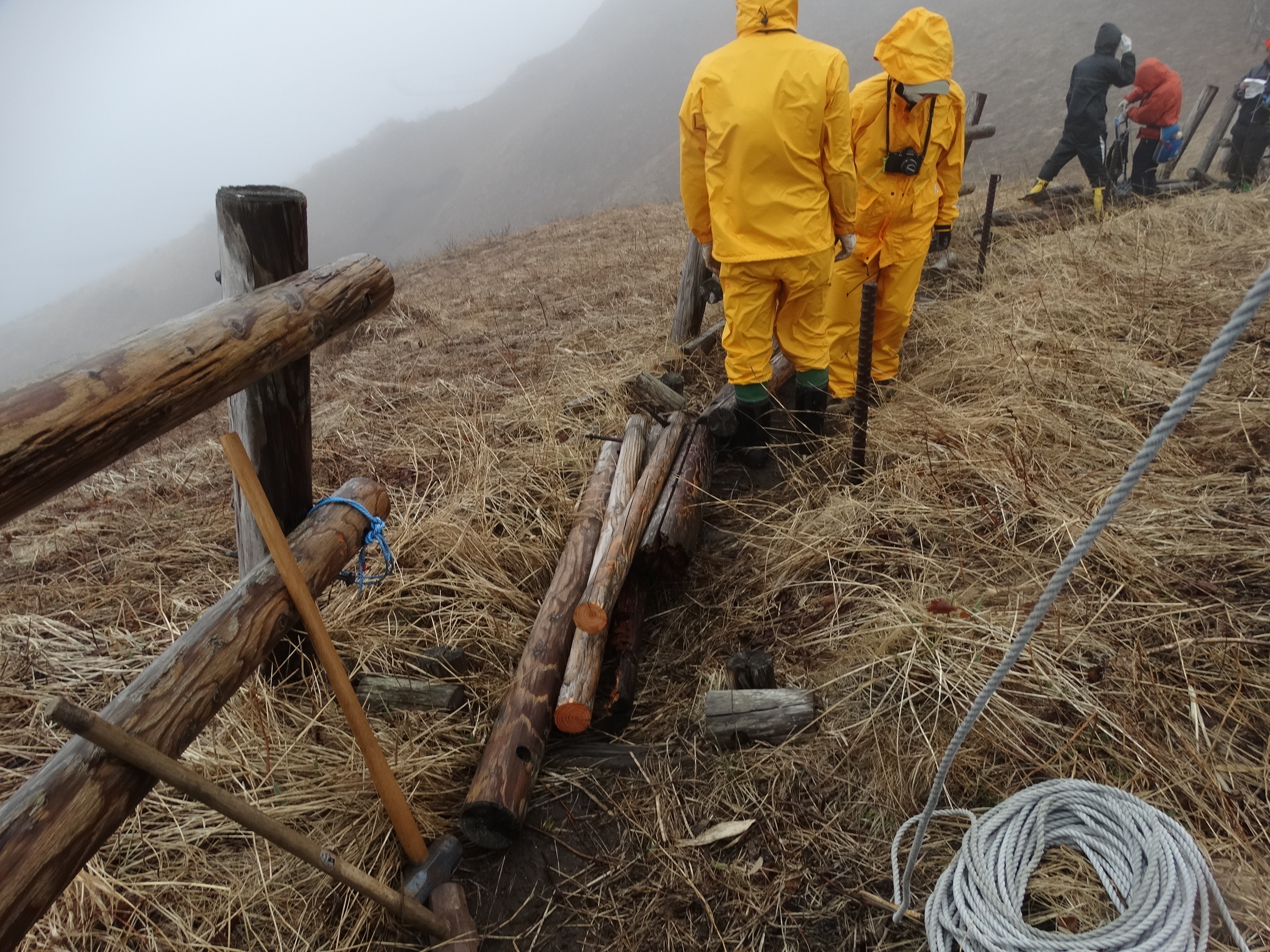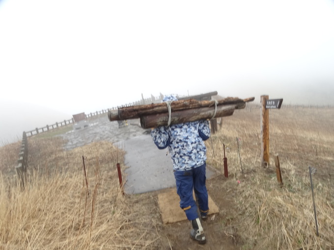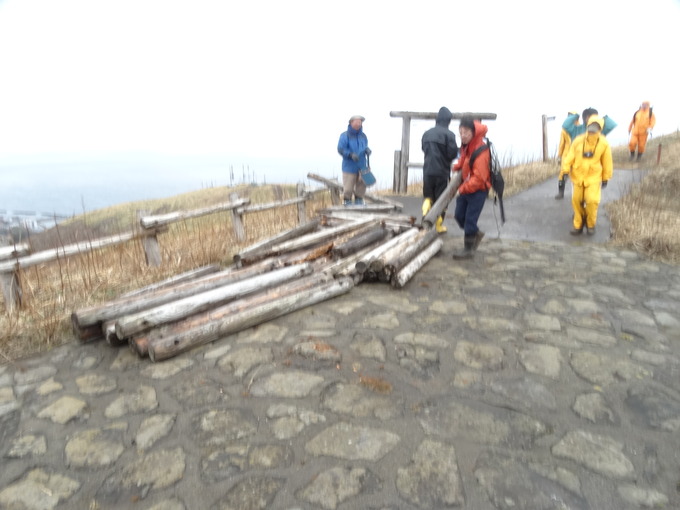 そんな寒い日だった4月26日に、礼文島では桃岩展望台コースの補修に取りかかりました。