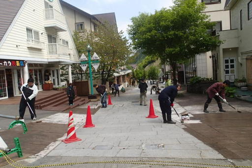 来訪者を心地よくお迎えできるようにと、層雲峡町内会のみなさんと大雪山パークボランティアで、5月27日には自然公園クリーンデーとして清掃活動を、6月7日には町内会のみなさんと層雲峡温泉街の真ん中を通る遊歩道(通称プロムナード)のペンキ塗りなどの作業をして、町並みを綺麗にしました。6月20日からは「層雲峡花物語り」のイベントで温泉街を花で彩っています。