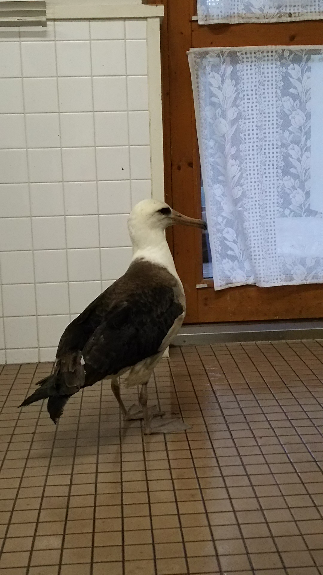 繁殖時期以外は洋上で生活するコアホウドリですが、内陸の長沼町で発見されたことに、とても驚きました。推測するに、強風にあおられて内陸に迷い込み、その際に胸を強く打ち、呼吸器を損傷したのではないかと思われました。