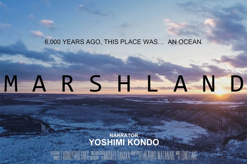 お話会以外の時間は、釧路湿原の美しさと大切さを映像で伝える空撮家・田中道人さんの作品(http://drone.bar/marshland/)を上映しています。大きなプロジェクター画面で見られるのが楽しみです。