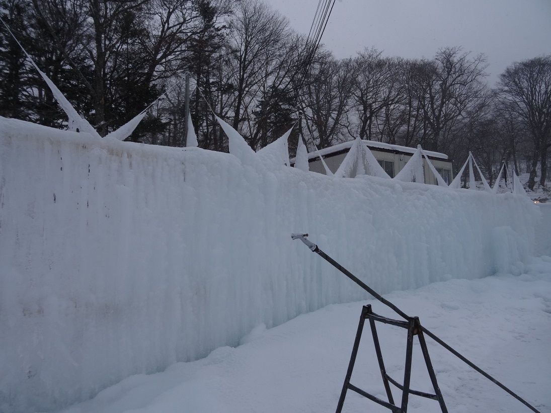 昨年の12月下旬から、スプリンクラーやノズル等で骨組みに湖水を吹き付ける作業が始まり、