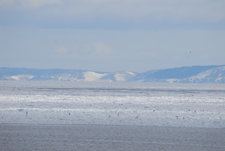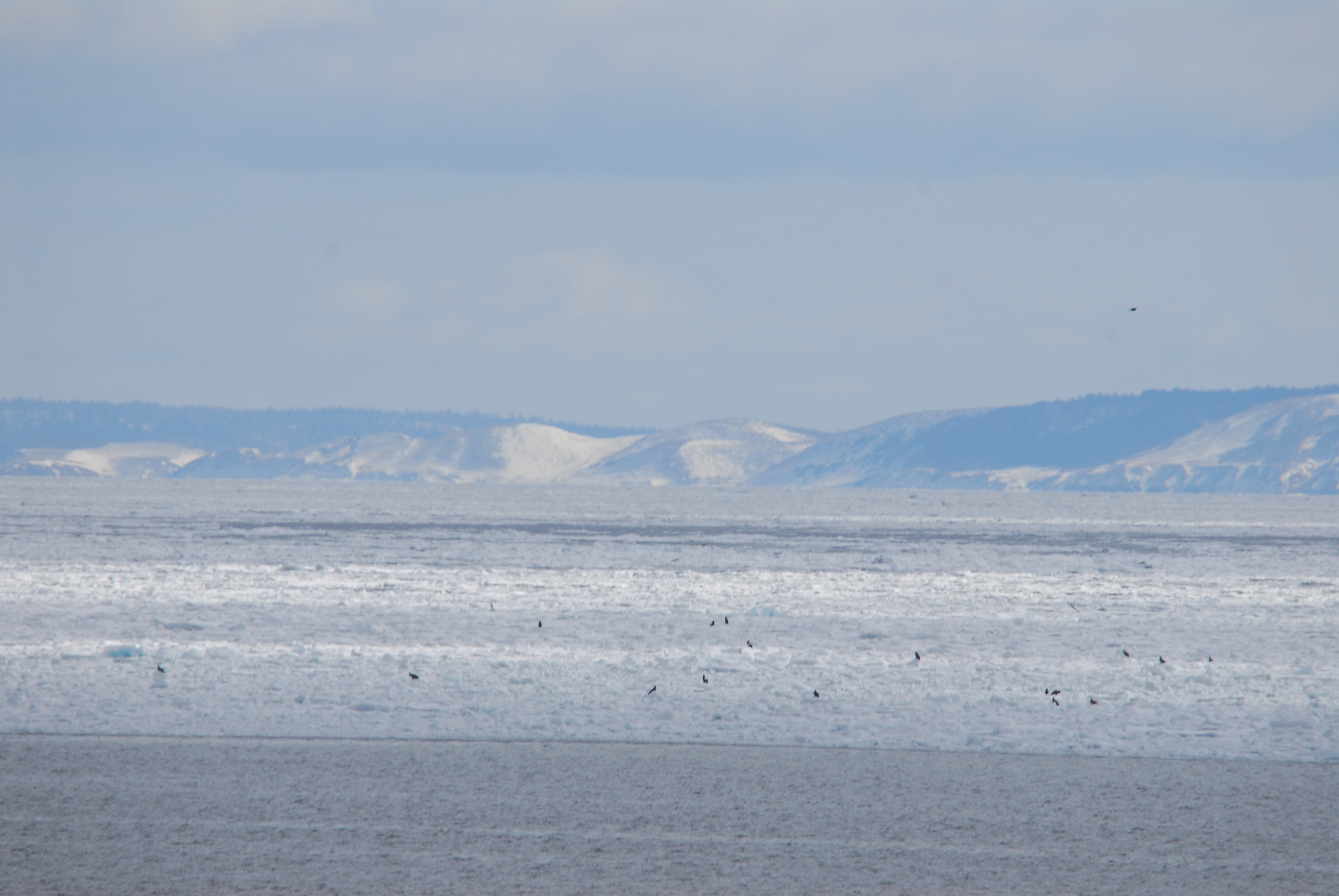 知床連山をはさんで西側のウトロに流氷が確認されたのは2週間ほど前 。羅臼にもやっと流氷がやってきました。