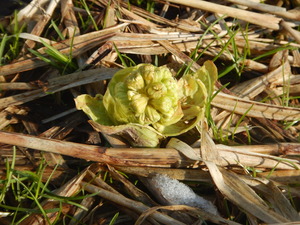 間欠泉の周りの雪はとけて、なんとふきのとうが開花しそうでした。