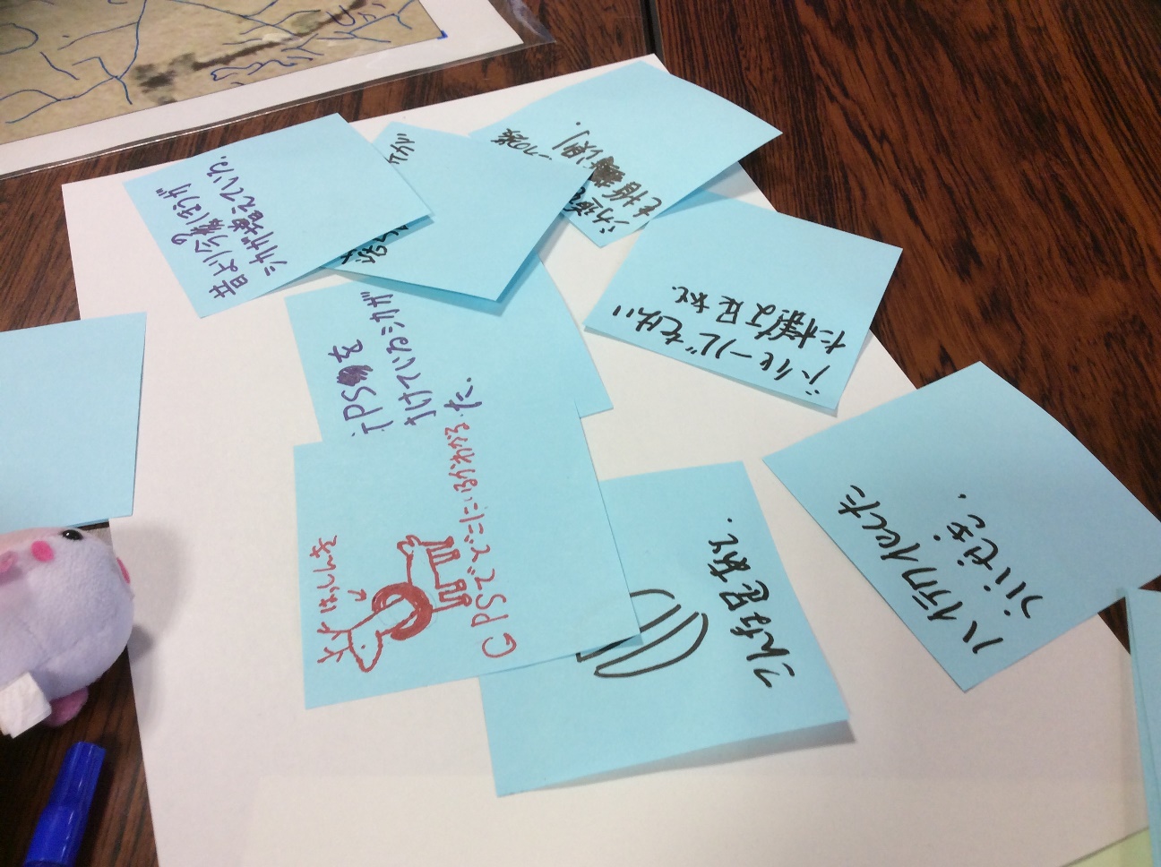 そのあとは、塘路湖エコミュージアムセンターに戻り、エゾシカ調査のデスクワークをして、いよいよ本日のまとめです。まずは、その日わかったエゾシカのスゴイこと!伝えたいこと!を、ふせんにひたすら書き出していきます。
