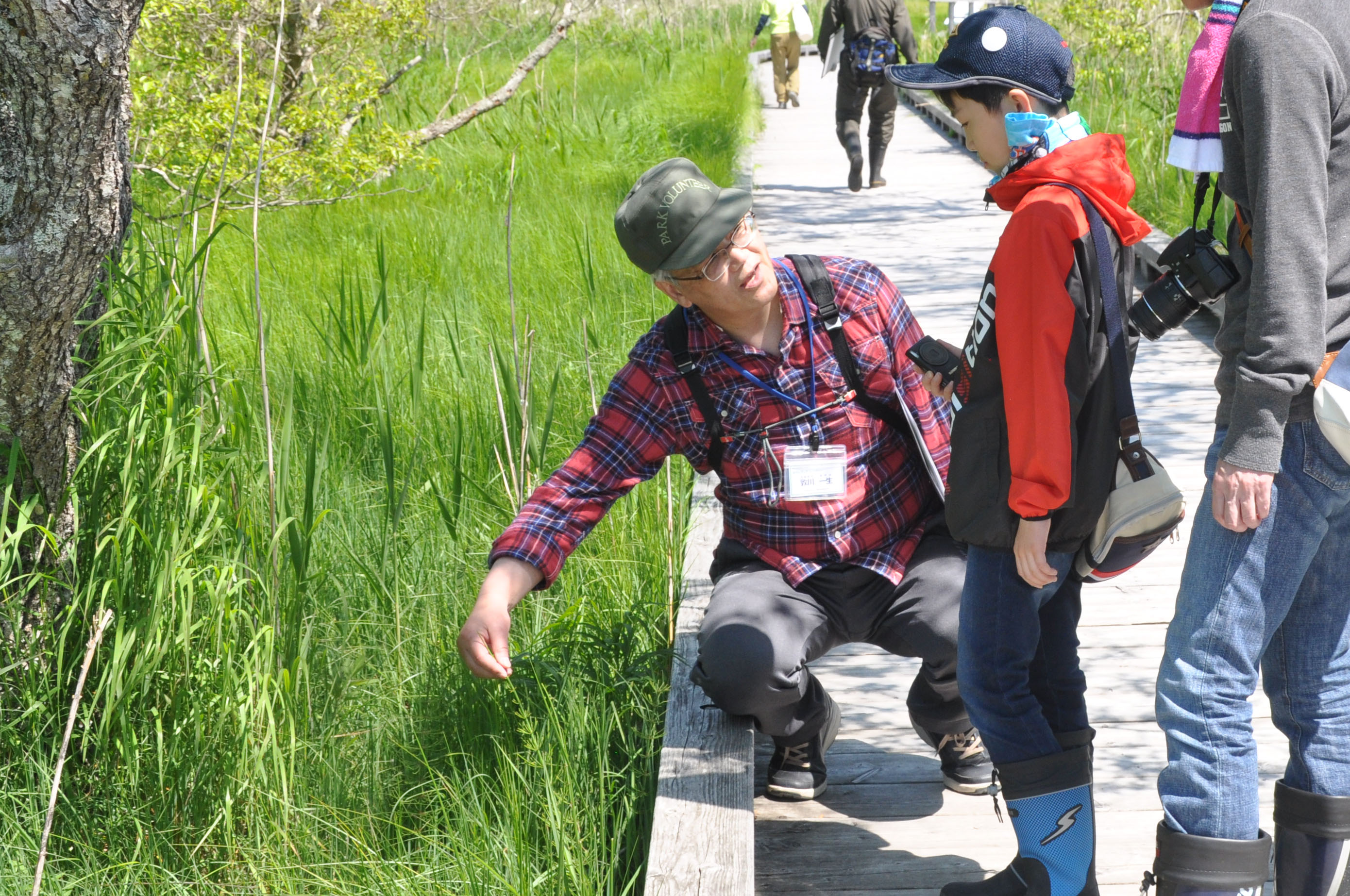 スポットガイドとは、木道の各スポットで待っているパークボランティアが湿原のおもしろ話をする特別な日。6/17(土)晴天のハイキング日和に、ご来場くださった皆さん、そしてこの日のためにとっておきの旬のネタを用意して解説してくださったボランティアの皆さん、ありがとうございました!