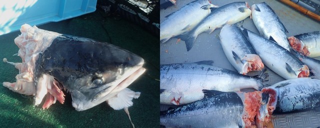 毎年、5月から7月に実施される春定置網漁では、えりも名物の「トキ(トキシラズ、春鮭、時鮭)」が獲れます。脂がのったトキは、焼き魚やルイベに絶品。しかし、特産品のトキを狙うのは漁師だけではありません。