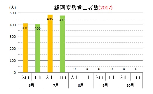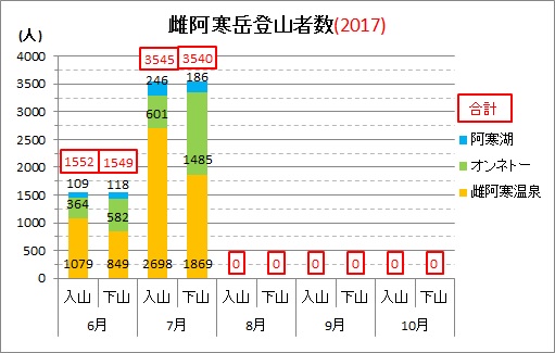 雄阿寒岳&雌阿寒岳登山者数【2017年7月】
