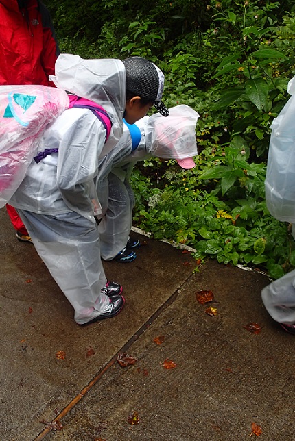 子どもたちは登山道が多くの人たちによって守られていることを知り、真剣な眼差しで
