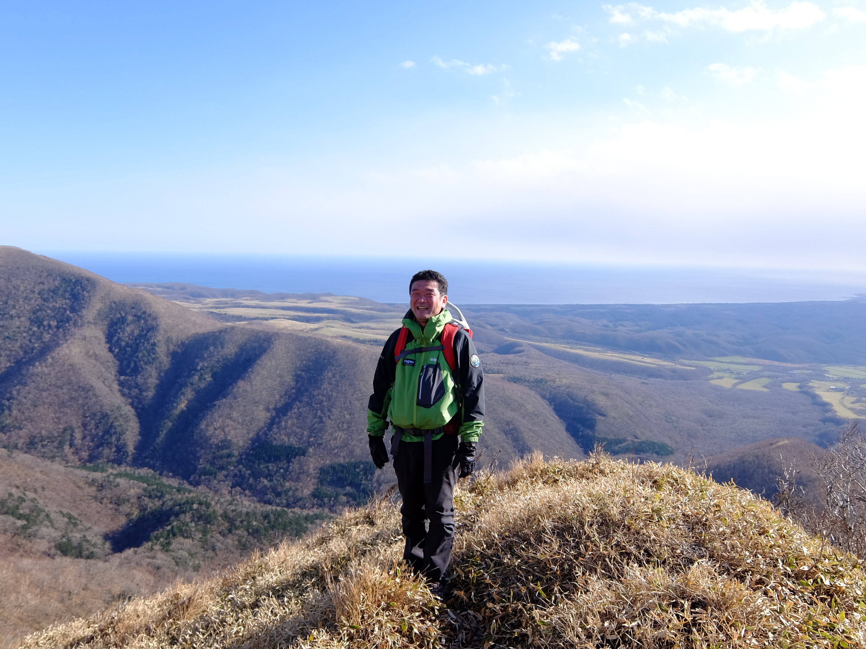 初日はルチシ山に登りました。ルチシ山は標高754mと2時間ほどで登れる山です。ルチシ山には登山道がないので、動物たちの踏み跡をたどって山頂を目指さなければなりません。低山ながら侮れないアグレッシブな山です。カラッと晴れた秋晴れの空の下、冷たい風に吹かれながら道なき道を歩きました。冬も間近で木々の葉は落ち、稜線からの眺めはバツグン。お手頃ながら、大満足の登山調査でした。