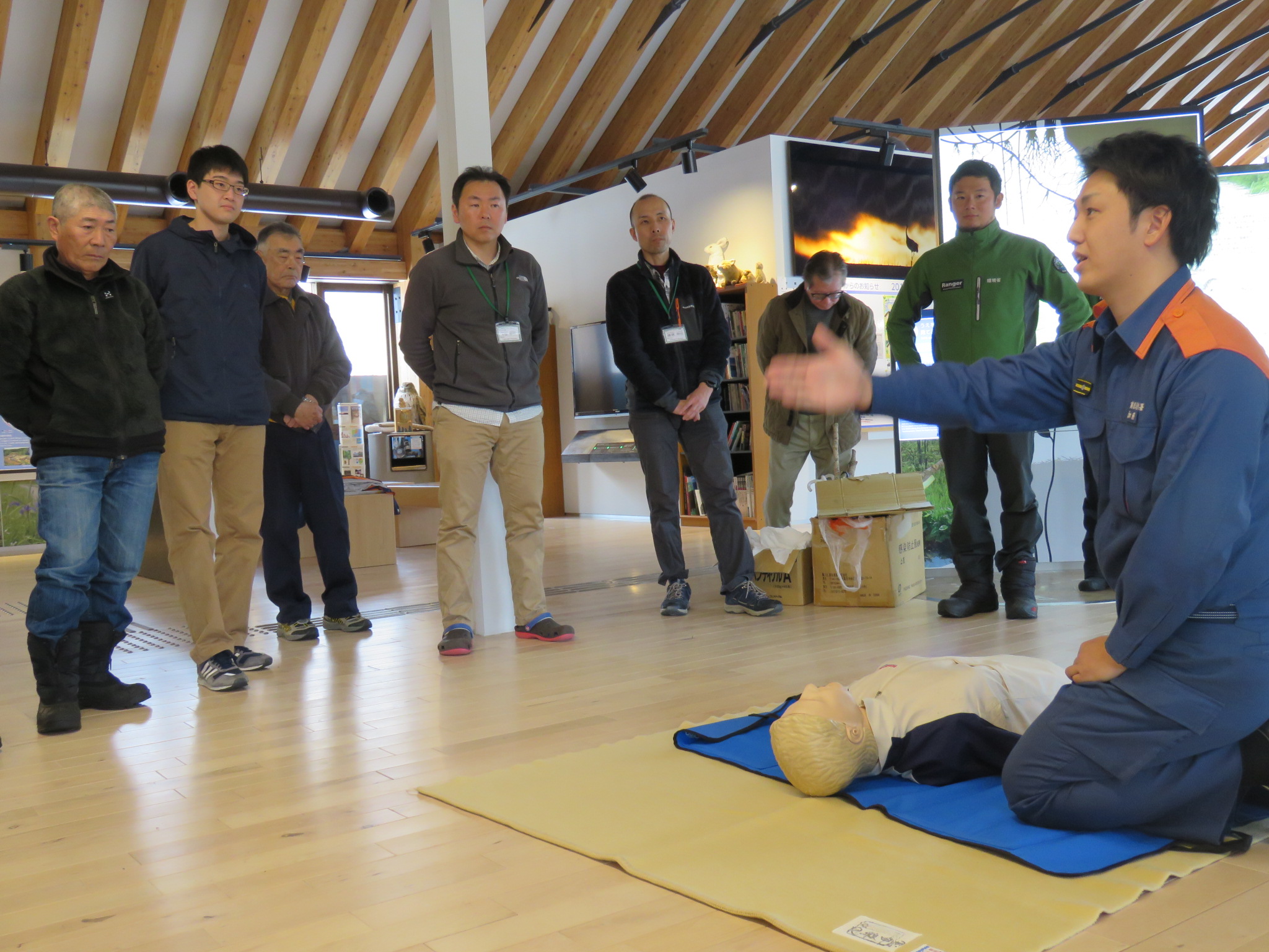 釧路湿原国立公園パークボランティア研修会「応急手当講習~活動時の事故に備えよう~」を温根内ビジターセンターで開催しました。