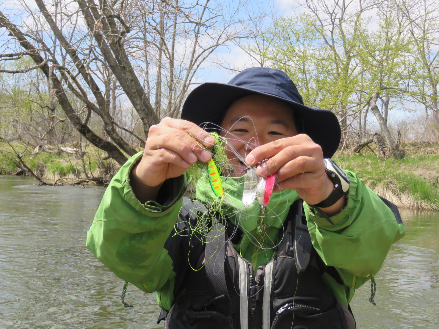 まずは、「私たちが下った後はキレイ◎」を合言葉に、川のお掃除。水鳥たちが誤食してしまう懸念のあるルアーや、目立つゴミの回収をおこないました。