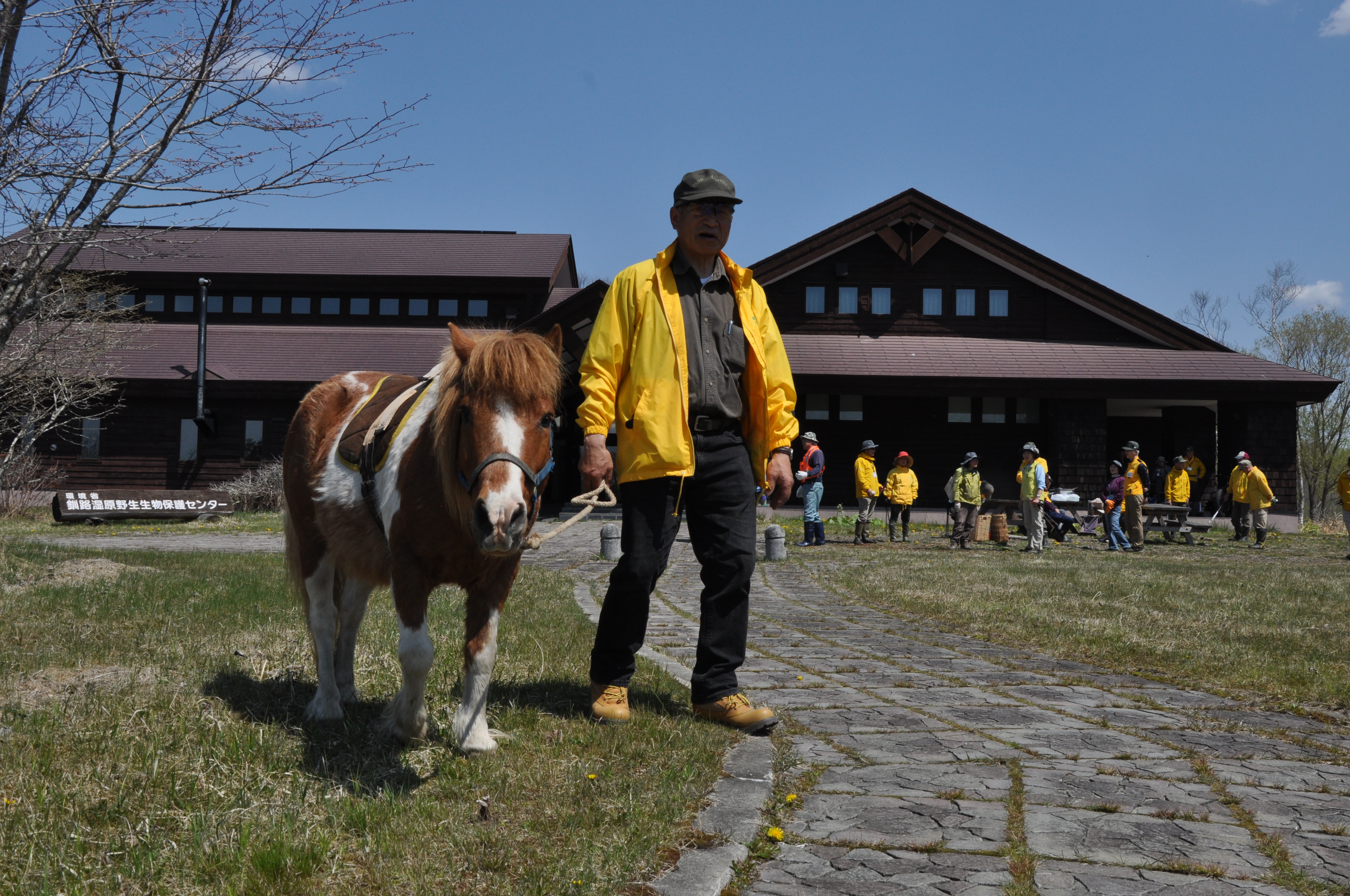 ところで、気になるのはこの日の人気者、ダイゴくんですよね!パークボランティアでもあり、馬愛好家が有志で立ち上げた「釧路湿原国立公園騎馬隊」の隊長でもある両角さんが連れてきてくれたのです。