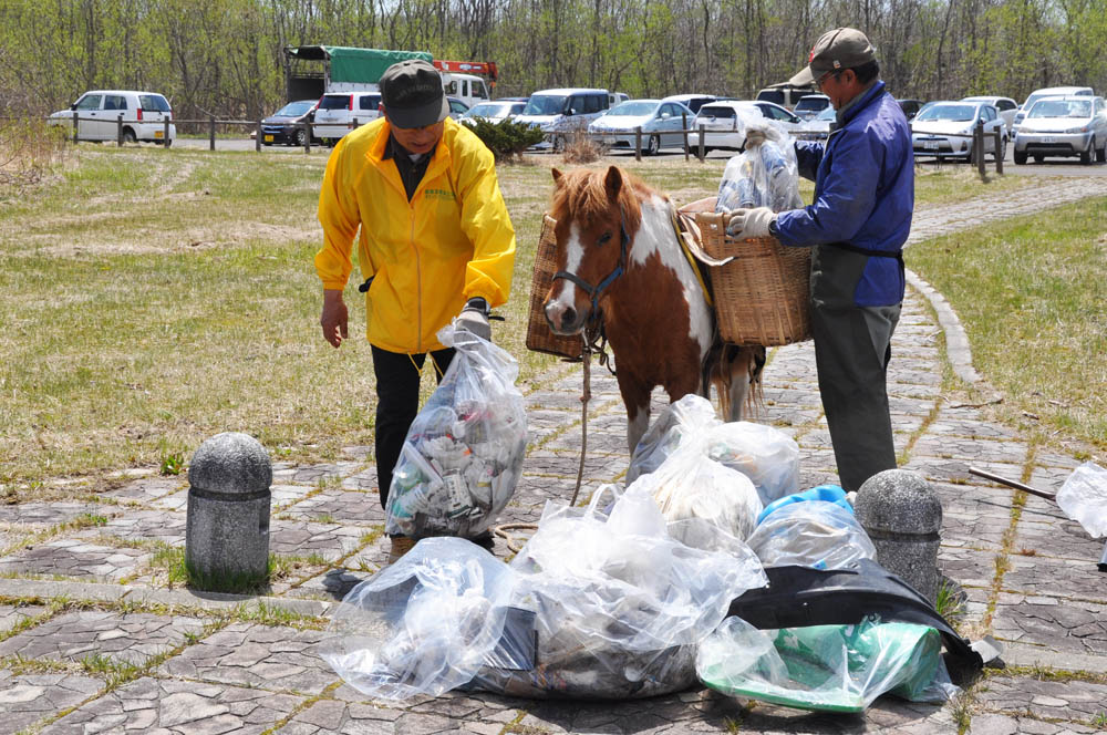 カゴを背中に積んでゴミを運んだり、のどかな雰囲気づくりをしたりと、大役を務めていました!
