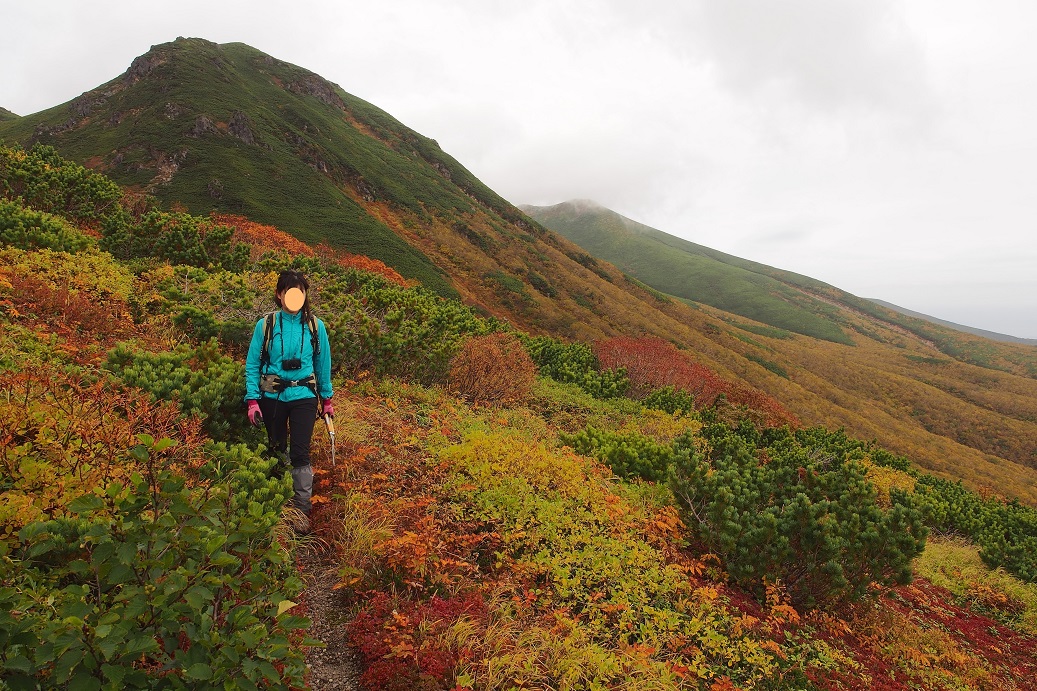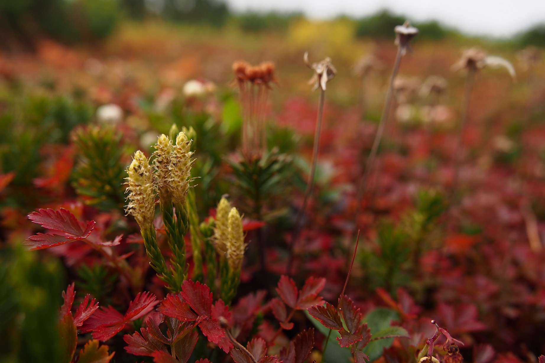 羅臼温泉登山道(羅臼町側から羅臼岳へ向かう登山道)にあるお花畑は草紅葉に覆われておりました。橙色のタカネトウウチソウや濃い赤に染まるチングルマが目立ちます。