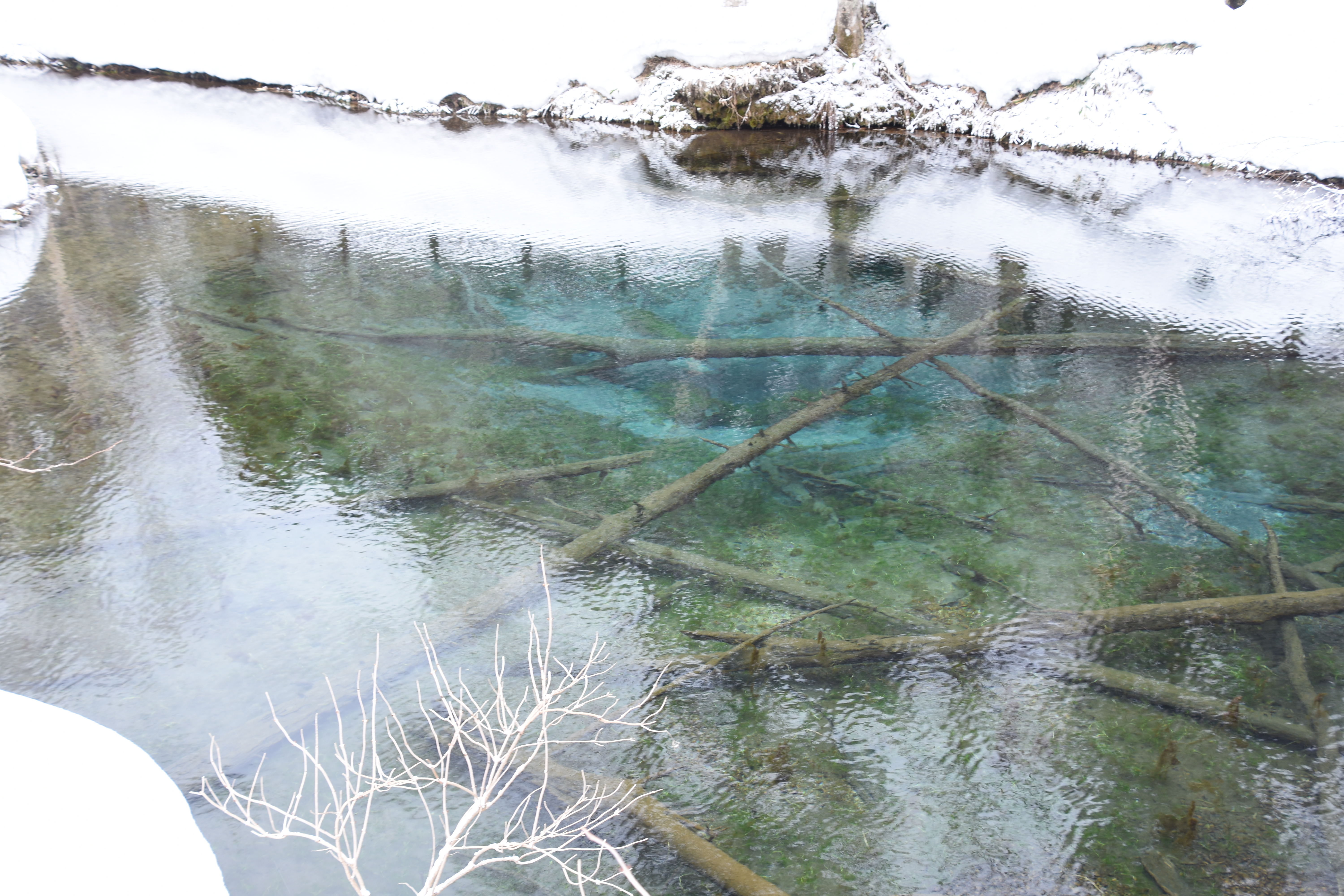 雪の中で静かに佇む神の子池
