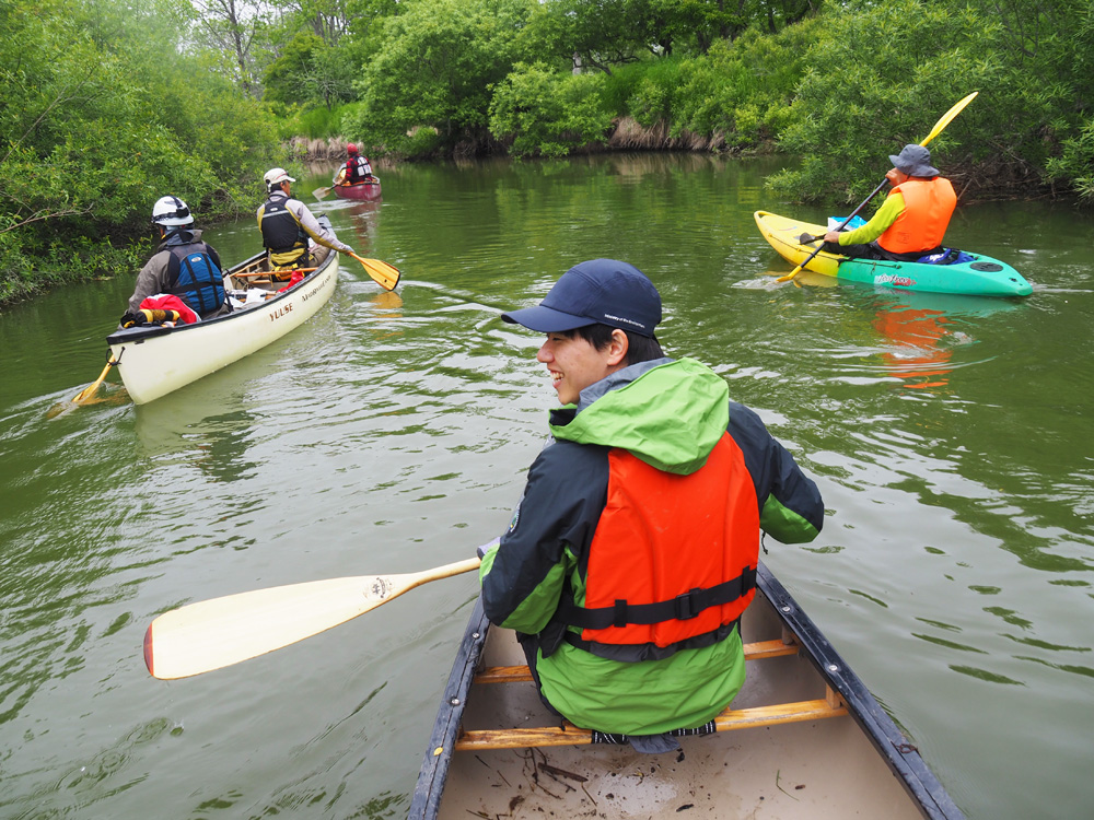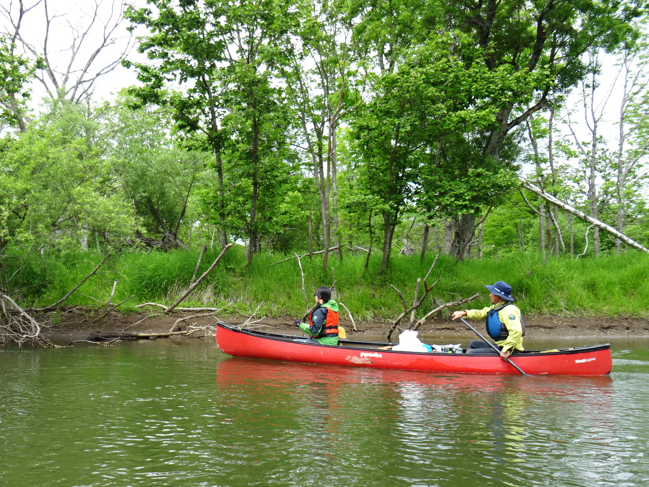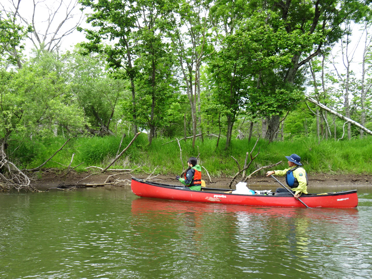 1回目は茅沼カヌーポートを出発し、細岡カヌーポートまでを。2回目は塘路湖から岩保木水門までを。どちらも距離にして15kmありますが、川の流れが後押ししてくれます。