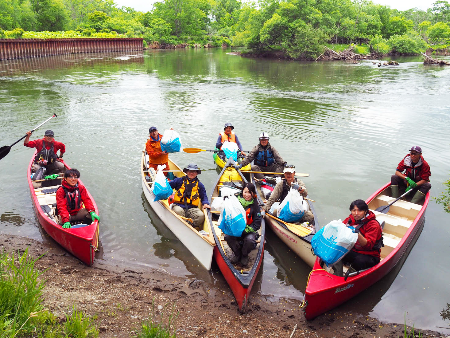 カヌーの中がゴミでいっぱいになったところでゴール!夏の準備が整いました。ご協力いただいた皆様、ありがとうございました!ピカピカの釧路川を下って、たくさんの感動と思い出をつくってほしいですね。