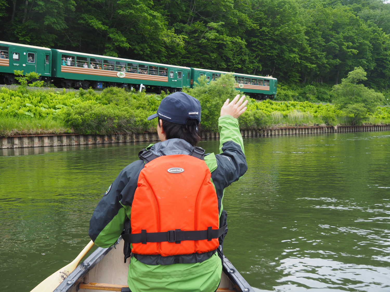野生動物の記録も行い、JR釧網本線「くしろ湿原ノロッコ号」を川から歓迎する、という裏ミッションも果たし、