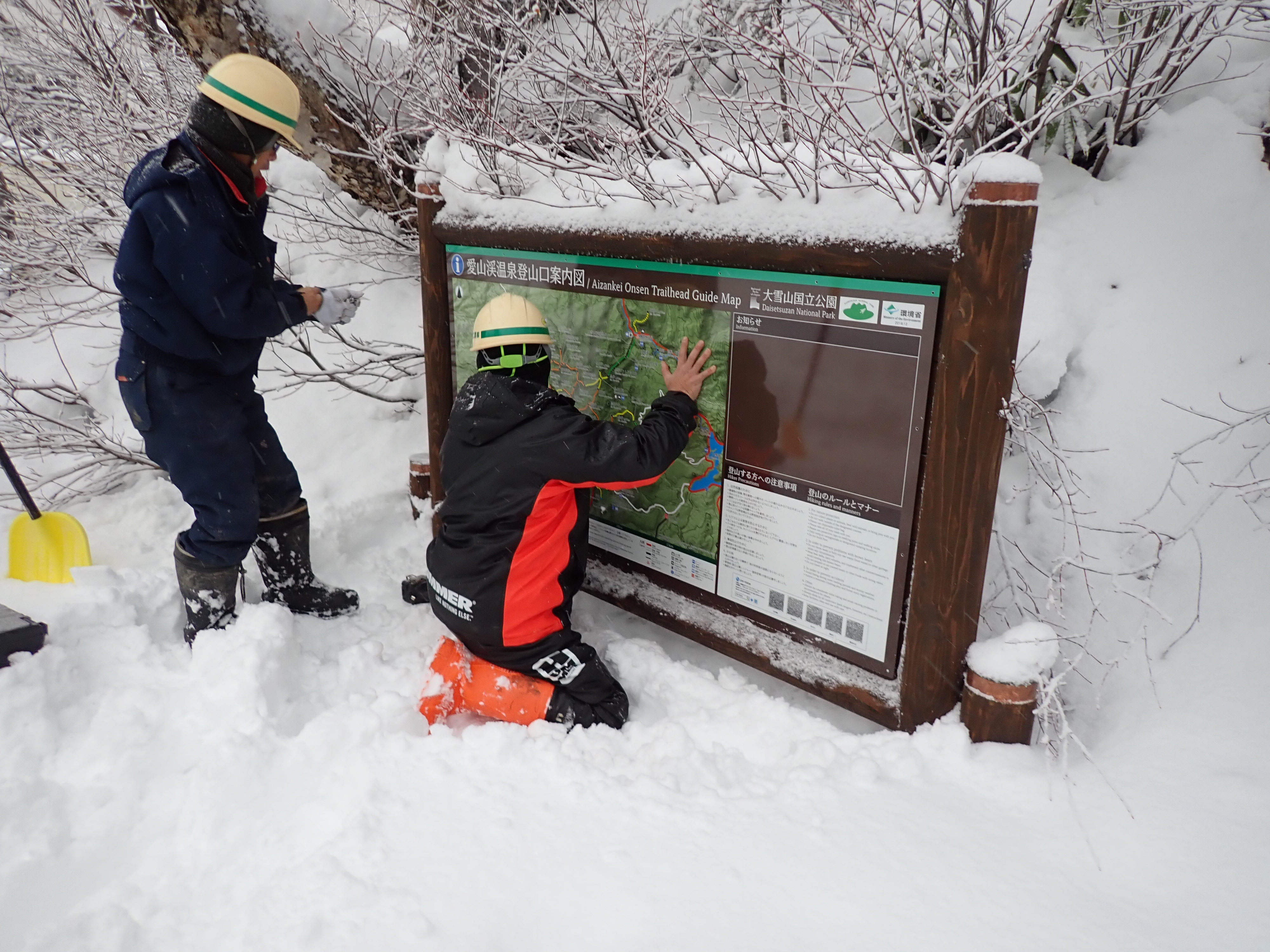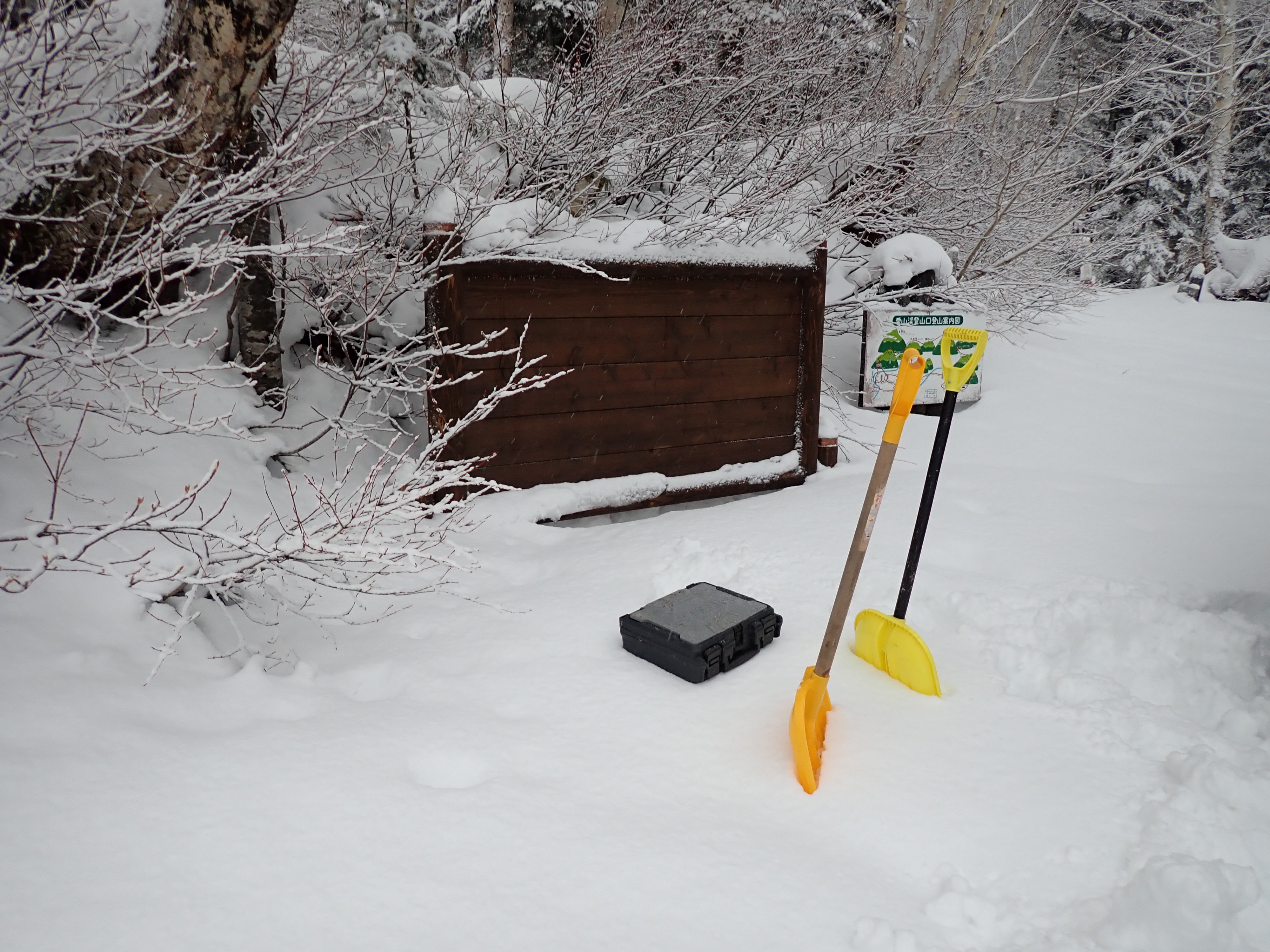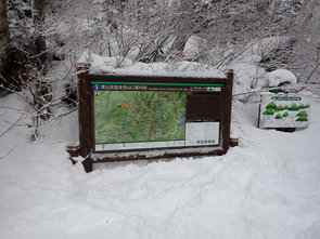 今回の記事は昨年の12月のこと、雪深き愛山渓温泉へ登山口案内看板盤面の