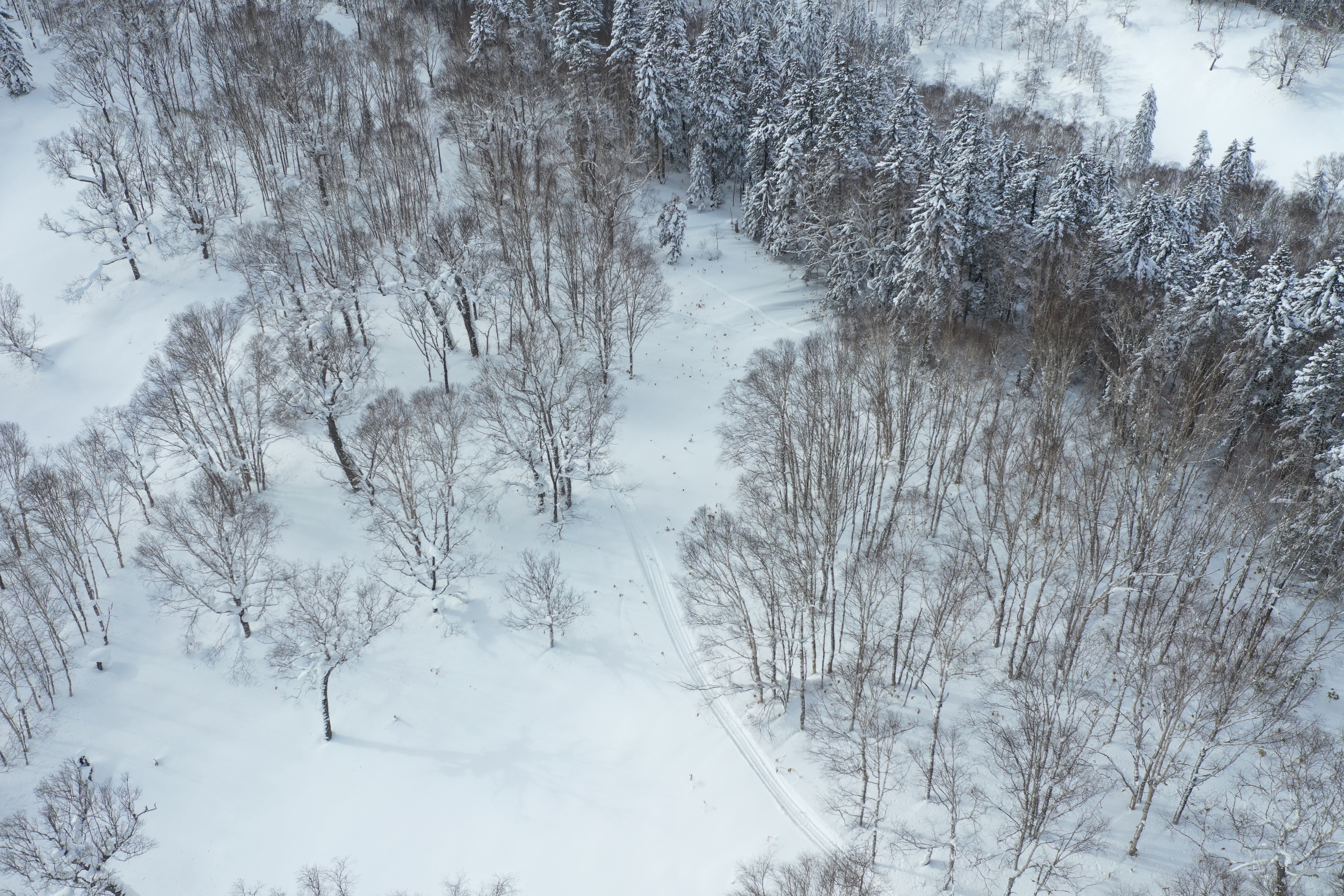 上空からは、スノーモビルの走行痕がしっかりと確認できたのは、ドローンを飛行させた意義があったと思います。また、今回使用したドローンは半径約5キロ程度まで飛行させることが可能であり、スノーモビルが規制区域へと侵入しているかを上空から確認するには非常に有効な方法だと思いました。