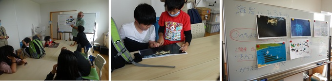 午前中は砂浜で実際の様子を調査し、午後からは室内で海洋ゴミ問題について考えました。