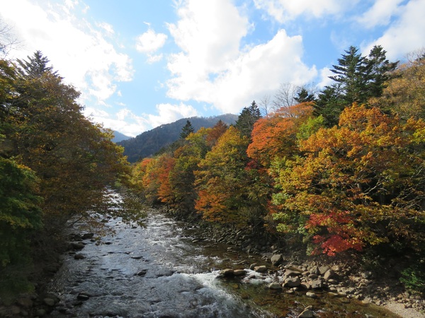 豊似湖の紅葉は終わりでしたが、そこまでの森はどこを見ても美しく、鳥がさえずり何ともいい時間が流れます。道中大きな角を携えたオスジカがよく飛び出してきます。シカは1頭いたらそれに続いて複数頭が飛び出してくることもありますので、お越しの際は十分気をつけながら走行してください。