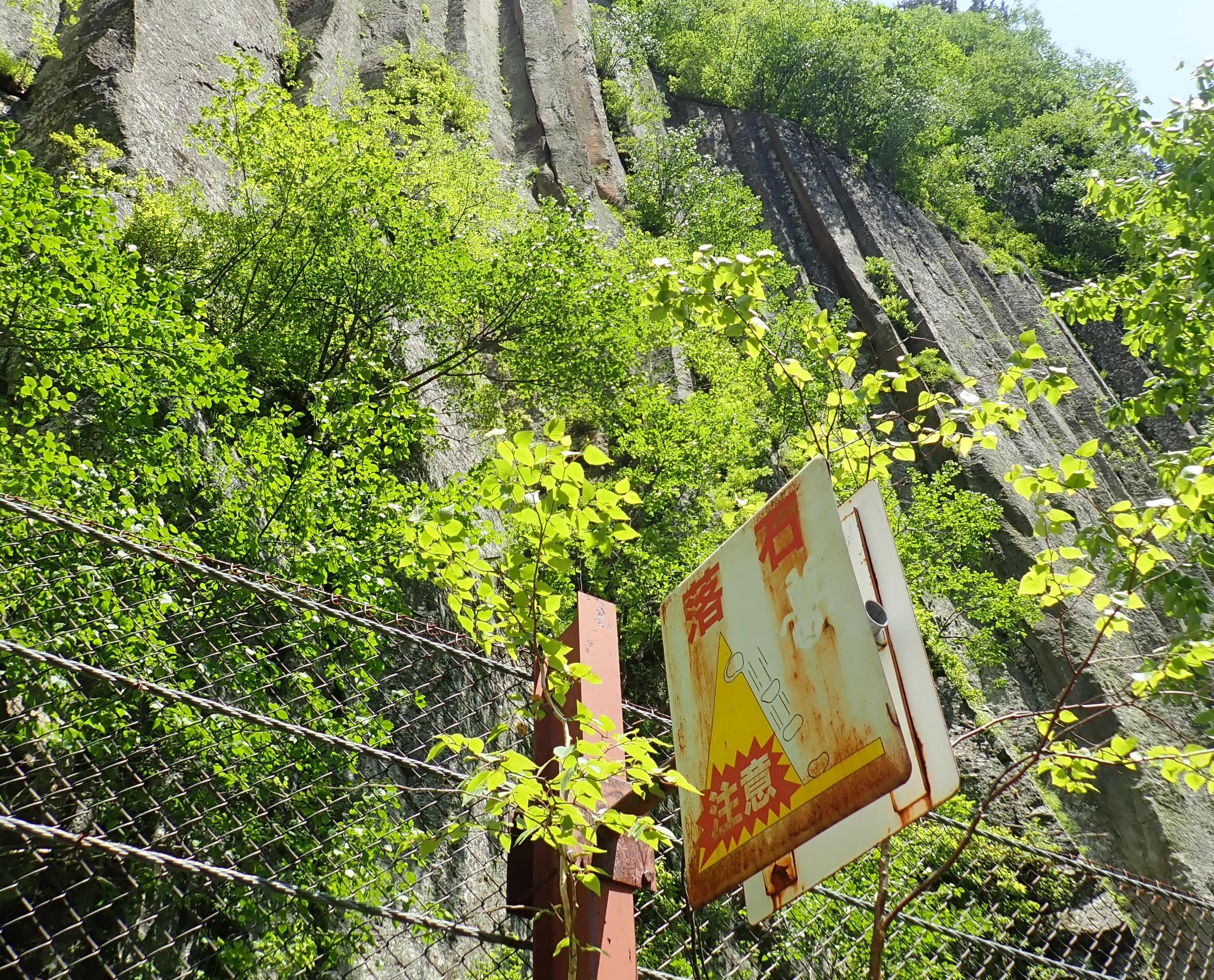 約20年前に閉鎖を決定づけた神削壁の崩落現場。