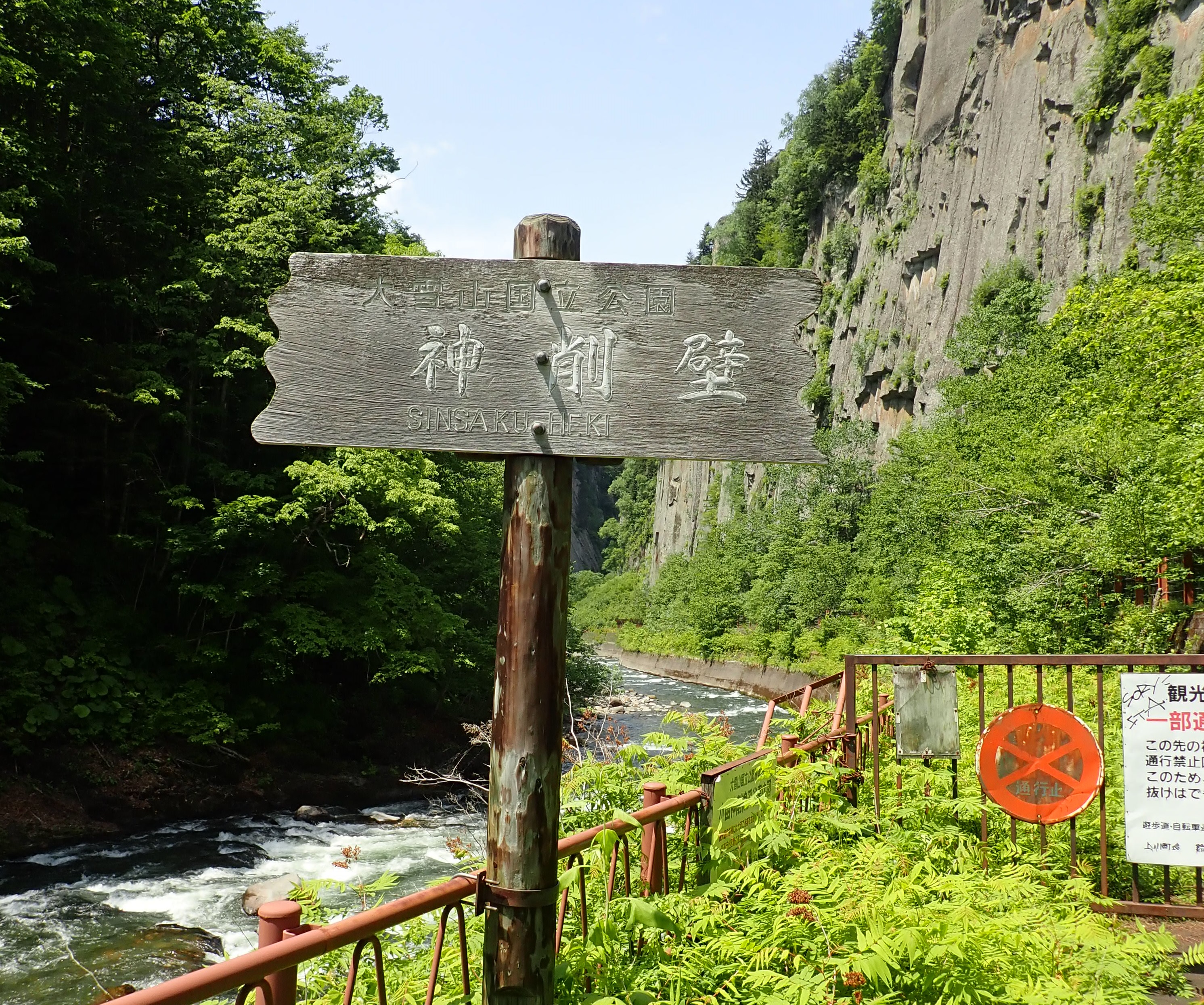 層雲峡方面から進むと神削壁の看板がある場所付近が小函地域の終着点。