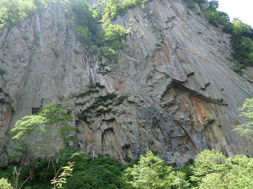 羽衣の岩です。こちら側に若干傾いている影響で押し迫ってくる様な錯覚に陥りそうに。