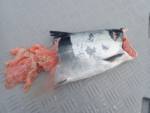 アイヌの言葉でアザラシをトッカリと呼びます。トッカリに食われてしまったサケ・マスです。