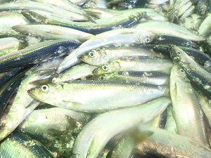 ▼今年、定置網で多く獲れた「ニシン」や「サバ」