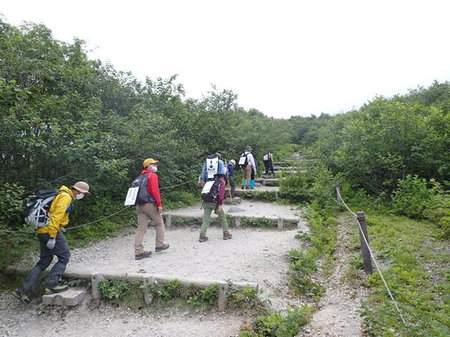 コマクサを除去する地点は山頂付近にあるため、自然観察をしながらまずは皆で登山です。
