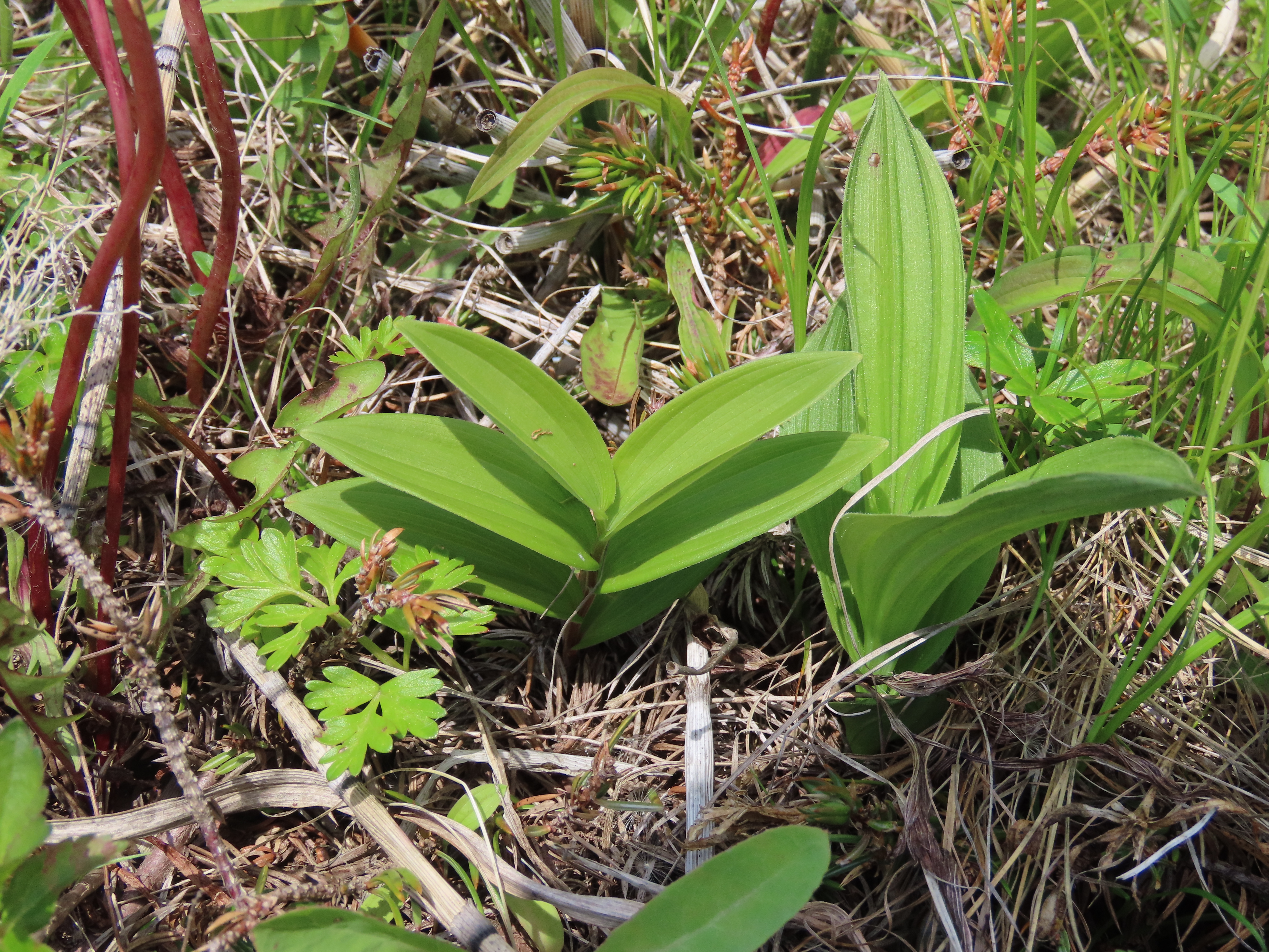 レブンアツモリソウ試験区調査業務では、立派な株からまだ花が咲かないような、小さいアツモリソウの葉まで、見逃さないようにして調査しています。