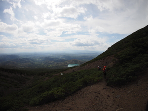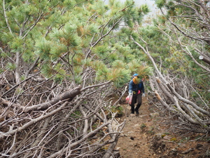 ハイマツのトンネル 雌阿寒岳7合目_オンネトー遠景
