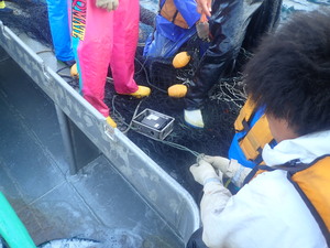 結び方には「こういう状況や場所にはこの結び方がよい」という適性があります。私たち職員がこれでいいかな、と思うものでやったとしても海中でのうねりが強かったり潮の流れが早かったりで解けてしまうこともあるので、漁師さんに良き結び方を教わります。