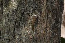 スズメよりも小さい鳥で、キツツキのように木の幹に縦にとまり、隠れている虫を探します。