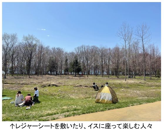 洞爺湖町に協力していただき、イスやテーブルをご用意していましたが、レジャーシートやイスを持ち込んで、ビオトープ沿いなどでピクニックやチェアリングを楽しんでいた方も多くいらっしゃり、新たな財田地域の楽しみ方を発見しました♪