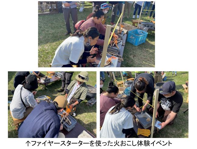 ビオトープ側の広場では、アウトドア商品・薪の販売のほか、ステンシルワークショップやヤナギの工作、火おこし体験などのイベントも開催しておりました!