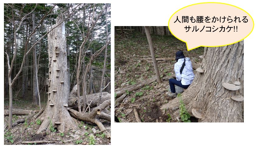 こちらは昨シーズン見られなかった大量のサルノコシカケ!まるでアートのようで、パークボランティアさんとともに見入っていました♪ 人間も腰をかけることができるほど、立派でした!