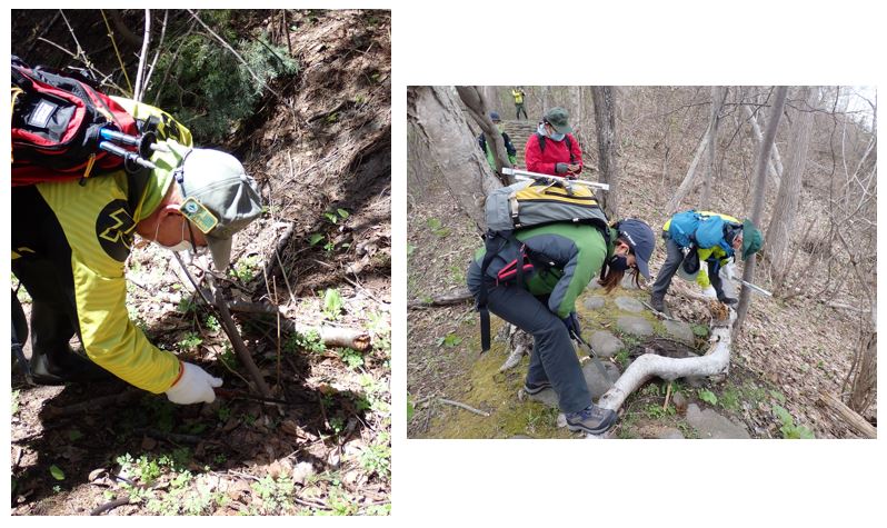 4月下旬に、洞爺湖地区パークボランティアのみなさんと一緒に、四十三山遊歩道の開通作業を実施いたしました!