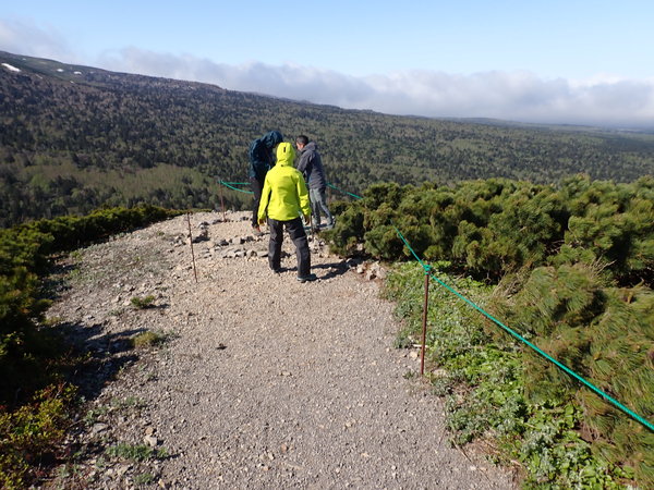当日はとても風が強く、会話もままならない状況でしたが、地元のガイドさんや自然公園指導員の方のご協力もあり、なんとかロープの設置をすることができました。