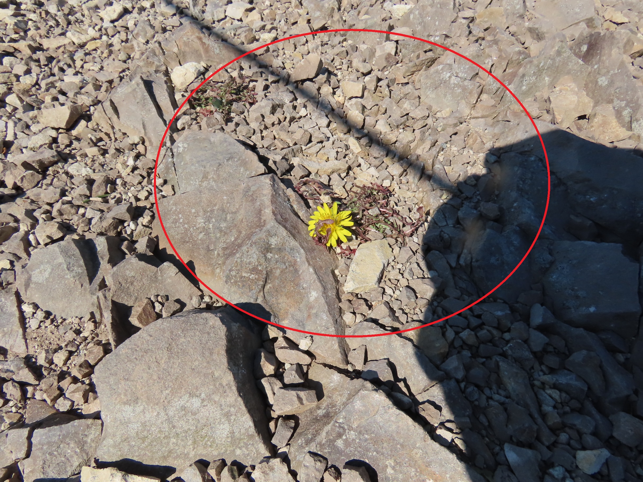 その他にも、エゾタンポポの周囲を大きめの石で丸く囲い、登山者の方の目に入るように目印をつけています。