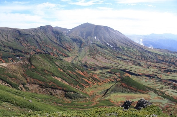 大雪山には鋭さや険しさはありませんが、この大きさがあります。山腹には噴煙を上げる活火山、一年中消えない万年雪、長い歳月をかけて作られた複雑な地形やオブジェのような岩、その下で無数に広がる命の営み・・・大雪山に堆積されてきた目には見えない太古からの「時間」の息づかいを感じることができます。