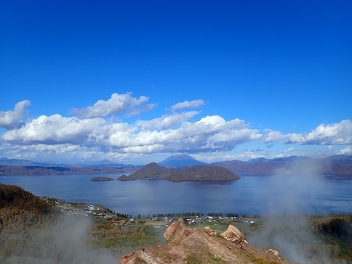 こちらの写真は、支笏洞爺国立公園の特別保護地区に位置する「昭和新山」の山頂で撮影した写真です。私有地であることや、防災の観点から、通常は立ち入り禁止区域となっておりますが、業務で特別に立ち入った際に撮影しました。支笏洞爺国立公園を代表する羊蹄山・洞爺湖・中島・昭和新山と、火山が生み出す絶景を一望できたことはもちろん、この写真の下部にもうっすらみえる、白煙が足元から立ち上っていく様子にも圧倒されました。